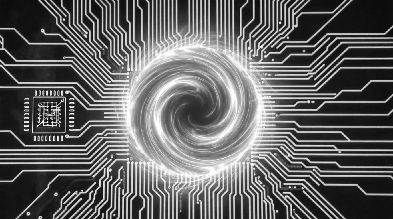 all layers freeze and dim. In loading, circuitry paths draw on in staggered